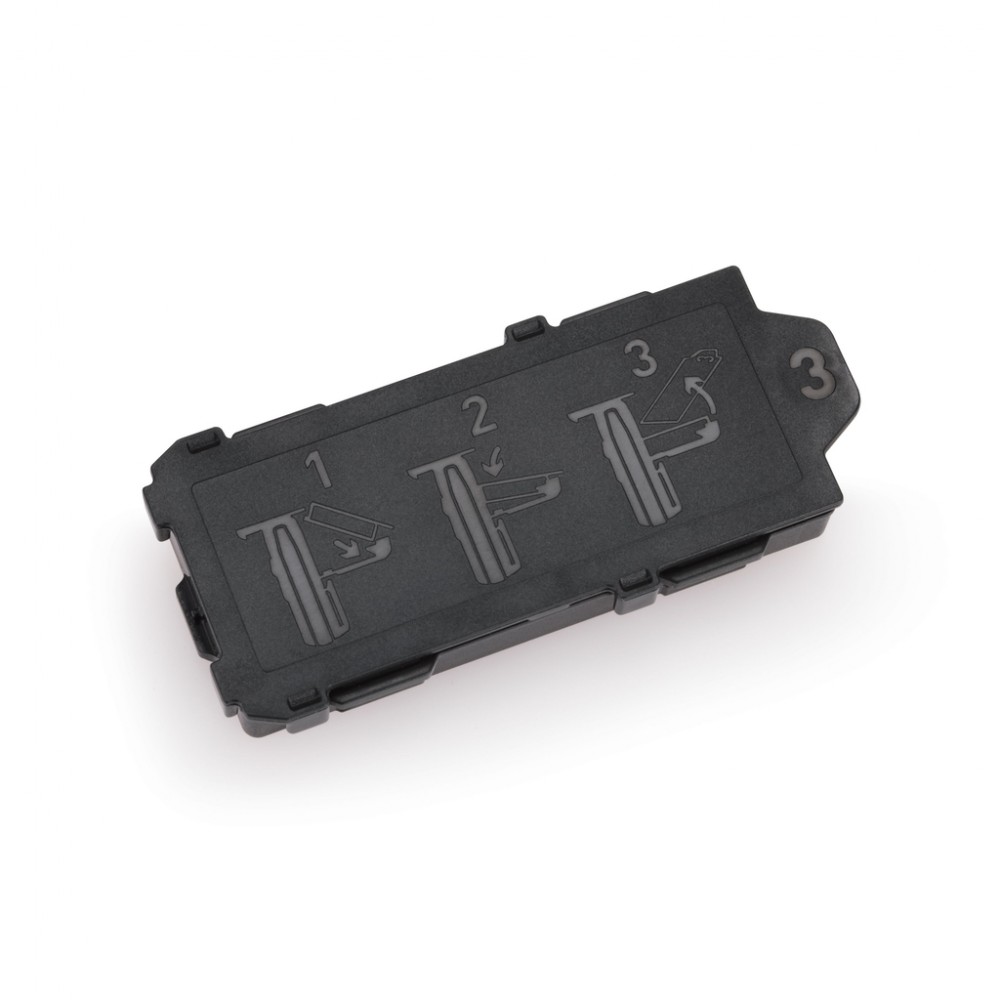 Zsebbarát méretének és egykezes használhatóságának köszönhetően bárhol bevethető. A beépített cserepárna gyorsan és tisztán cserélhető, így nincs szükség külön tintapárnára.